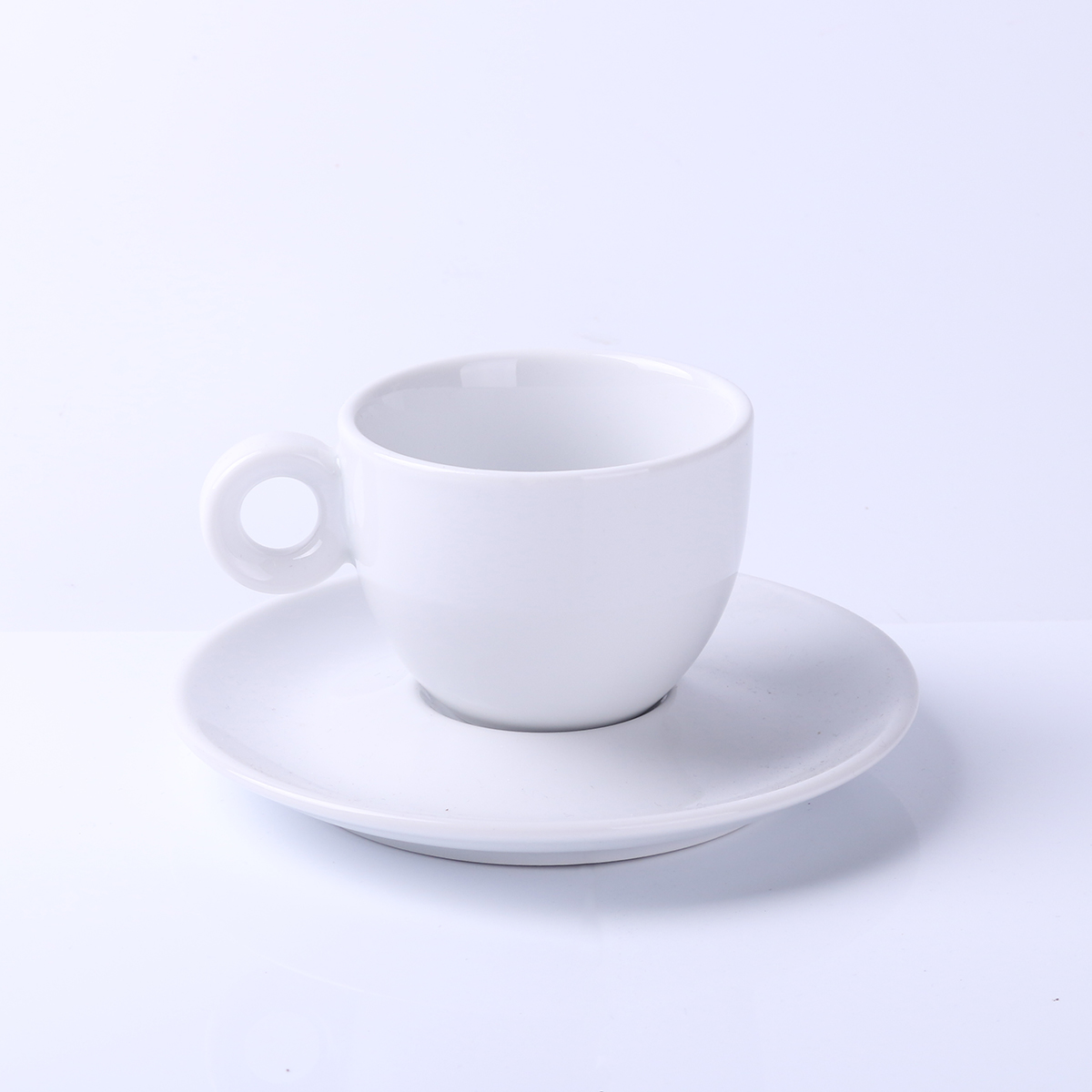 Elegancka filiżanka wyróżniająca się charakterystycznym okrągłym uchwytem.