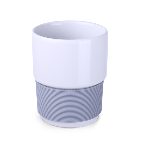 Średniej wielkości, porcelanowy kubek reklamowy bez uchwytu. Opaski o szerokości 40mm dostępne w 7 wersjach kolorystycznych: białej, pomarańczowej, czerwonej, zielonej, granatowej, brązowej i czarnej.
