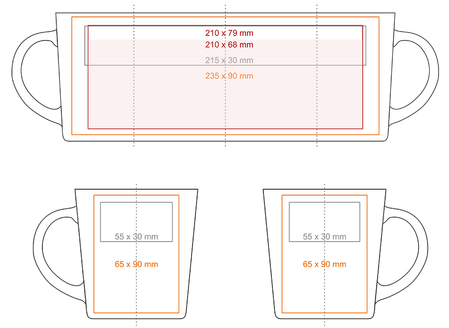 * W przypadku projektów wybiegających poza standardową powierzchnię nadruku prosimy o kontakt z działem handlowym.