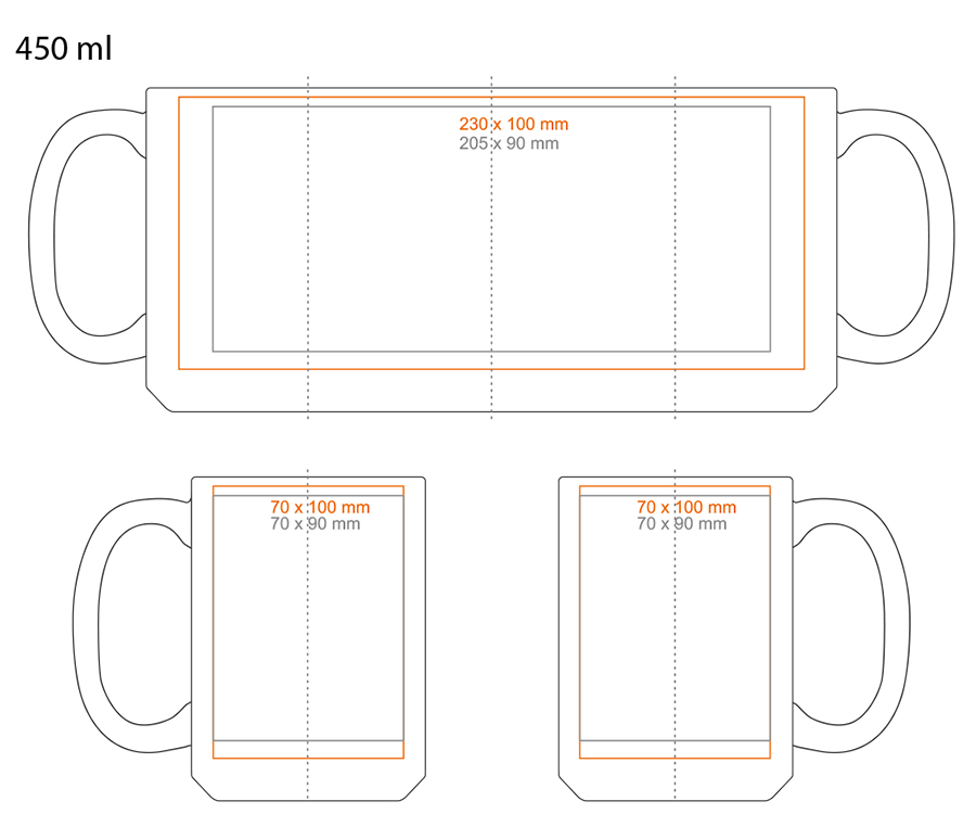 * W przypadku projektów wybiegających poza standardową powierzchnię nadruku prosimy o kontakt z działem handlowym.