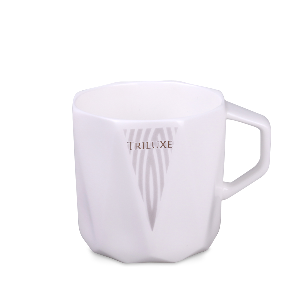 Prestiżowy kubek wykonany z najwyższej klasy porcelany Fine Bone China. Wyróżnia go wyjątkowy geometryczny kształt swą strukturą przypominający diament. Reprezentant linii Prestige Line.